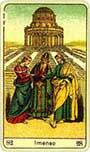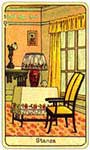 Эта карта вздохов, вздохи девушки происходят после того, как она тоскливо заплачет. Она ждет прибытия кого-то, или он только что отбыл? Если обратить внимание на фото в ее руке и брошенную увядшую розу, можно предположить, что она ждет кого-то скорее всего и давно (вуаль - плохие предчувствия). Данная карта призывает к выдержке и терпению, способности ждать преданно и долго. Кто ждет, тот получит, всему свое время. Если вы задаете вопрос, требующий определения во времени, эта карта укажет на то, что нужно подождать и сделать паузу. Иногда это даже лучше оставаться в неведении какое-то время, чем услышать что-то нелицеприятное. Женщина поглощена своими мыслями и эмоциями. Она опирается на лавку, ищет опору в этой жизни, она беззащитна и хрупка. Но в этой карте есть тонкая сила - это сила духа. Вода - указывает на море чувств и эмоций, которые переполняют ее в ожидании. Нужно иметь надежду на будущее. Если карта выпадает на результат, ее значение - обещание. Никакие усилия, или давления не ускорят результат.