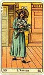 На карте изображена молодая женщина, опираясь на красный плащ, который олицетворяет пробуждение интимной энергии. Она держит кое-что в своей руке, возможно это карточка молодого человека, которого она желает. Возможно он дал ей ее, когда уходил и пообещал скоро вернуться. Это может также быть религиозная картина, и она молится своему любимому Святому просит его о любимом, чтобы он мог вернуться благополучно домой. Когда эта карта предстает в чтении для мужчины, она предполагает, что о нем думает женщина, которая находится в его близком окружении, но на которую он раньше не обращал внимания, или просто не замечал. Возможно она сама положила на вас глаз, мечтает о вас и не знает, как приблизиться. Так же эта карта может означать, что она под сердцем носит его ребенка, и карточка - это символический дар, который он ей сделал таким образом, и предзнаменование, что ее беременность будет протекать гладко и без проблем. Эта женщина излучает любовь и нежность по отношению к мужчине. Карта в целом представляет семейную женщину, жену, мать, подругу, любовницу, ассоциируется с восьмым домом гороскопа и Скорпионом. Индивидуальность ее сильна, своенравна и упряма. Соседние карты укажут, какую роль она играет в жизни мужчины и что у нее на уме. Предрекает знакомство. В раскладе для женщины: карта представляет вас саму, или вашу близкую подругу, указывает на то, что вы будете в центре внимания благодаря шарму и женственности.