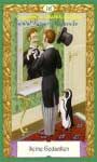 16. ЕГО МЫСЛИ.Карта олицетворяет, прежде всего, человека из вашего окружения. Мысли, опасения, фантазии и т.п. Пришла пора подумать. Грандиозные планы! На классичесском оракуле изображен мужчина в цилиндре и плаще. Он стоит полностью одетый для выхода посреди комнаты и о чем-то задумался. В руке у него трость. Локоло мужчсины горшок с цветком. Позади него диван золотистого цвета (богатство, радость). На полу лежит розовый (ближе к красному) коврик. Он свою сексуальность или надежду (тут все от цветовоспиятия зависит) попирает ногами. На стене светильник в виде Эрота (Купидона), который целится мужчине в голову. Но т.к. голова прикрыта цилиндром, то Купидон своей цели не добьется. Мужчина все равно будет думать о своем, но не о любви, это точно. Цветок у меня на экране отображается мелко, поэтому не разглядеть, что это за цветок. Голубовато-серый цвет его одежды также говорит о его напряженной мыслительной деятельности, а так же о скрытности. О его скрытности напоминают и руки. Одна из них в кармане. На мистических кипперах изображен мужчина в черном фраке, смотрящийся в зеркало. Его цилиндр висит на кручке рядом с зеркалом. На полу красный коврик. Рядом с мужчиной пингвин. Черный фрак – символ благородства и благоаолучия, но также унылости и монотонности. Императорский пингвин (о символизме ничего не нашла, только то, что он является символом операционной системы Lunix. Но из википедии: «Императорский пингвин, несмотря на гордый вид и название, является очень осторожной и даже пугливой птицей. Многие попытки окольцевать его не увенчались успехом, так как при приближении потенциальной опасности начиналась такая паника, что пингвины разбегались, бросая яйца и птенцов». Можно эту осторожность прибавить к значениям нашей карты. |