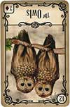 Как будут развиваться события: СОВЫ Карта негативная; показывает, что человек погружен в себя; уход от реальности, темные мысли, сомнения, переживания. Может обозначать супружескую пару, родителей или одного из супругов. Может означать телефонные разговоры или общение в интернете, на форуме, в социальных сетях. |