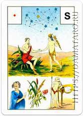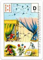 Изучаемый вопрос наполовину скрыт от вас. В настоящий момент определились только действующие лица, а об остальном можно говорить только в общих чертах. Будьте внимательны! Вас хотят хитростью втянуть в опасную авантюру. Берясь за дело, будьте готовы к любовным испытаниям. В любом случае, карта говорит о начале большого и трудного дела, детали которого будут открываться в пути. Если рядом нет плохих карт, то смело отправляйтесь в путь. Иногда она может говорить о планах путешествия или поездки.