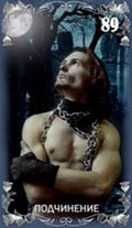 В магических раскладах - ПОДЧИНЕНИЕ, ПОДАВЛЕНИЕ ВОЛИ. Ключевые слова=цепи, ад отношений, черная свадьба, порабощение, садомазохизм