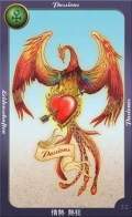 Страсть здесь символизирует птица Феникс, животное огня, которое сгорает дотла. Страсть - сильное чувство, которое, возможно, стимулирует на продвижение больших проектов, но также может и уничтожить нас. Чувство любви - не единственное значение этой карты. Она указывает на все, что очаровывает нас. Но переизбыток ослепляет и приносит вред. Подобным чувством нужно уметь управлять, чтобы все было в меру. Карта означает развитие и трансформацию (касается это любви или же каналов энергии, направленных на выполнение проекта). Если страсть уничтожила нас, то есть шанс, что мы можем возродиться в виде другой формы, также как Феникс, но нужно этому научиться. Эта карта символизирует сильные чувства, любовь или другие желанные цели. Также она может указывать на страдание через ревность, насилие, необдуманность, неразделенные чувства и слепую одержимость.