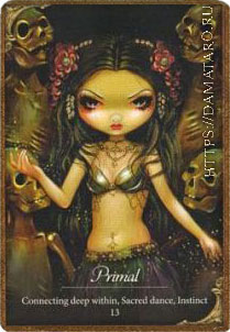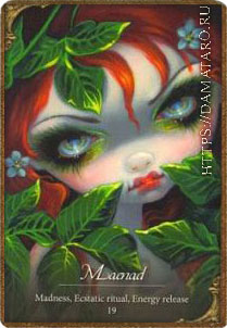 Оракул говорит: Менады являются женщинами жрицами бога Диониса, обезумевшими от плодов виноградной лозы, и, учитывая пространство ритуала, они спускаются в ритуальном экстазе, где разгул плотских наслаждений, нестабильность, неистовый танец и обжорство - все разрешено и правильно. В этом пространстве божественного безумия мы все должны, в том числе и вы, дать выражение и исчерпать себя относительно безопасно. Когда она приходит к вам в этой карте, это для вас сейчас - найти безопасное место, чтобы делать то, что вы считаете небезопасным безопасным и защищенным образом. Что это значит? У вас может быть стремление быть свободным, диким, чтобы свободно сбросить с себя цепи и найти свое выражение в танце, сексе, вечеринке и интоксикации, оно приходит к вам сейчас, это существо, которое будет пожирать вас, если вы не сможете найти способ безопасно выразить эти побуждения. Потому что этот вампир, это стремление выразить божественное безумие, будет подрывать вашу душу, если вы будете подавлять его больше, тогда Менада может разорвать тебя на куски. То есть тогда зависимость может найти вас. Это когда излишество можете требовать выхода через физическую форму. Это Менада смотрит на тебя сейчас, глаза полны яда, готовые заразить вас, если вы выразите это, вы вновь откроете для себя прекрасную безумную жизнь по-своему. Если вы сейчас не начнете танцевать, радоваться, терять самосознания, вы будете сражаться каждый день, она найдет вас, и ее листья отравят вас, даже если вначале они вас порадуют. Настало время для радости, которая хочет выразиться через вас. Настало время для безумия. Пора пить нектар любви, вино, смеяться до коликов в животе... Пора.