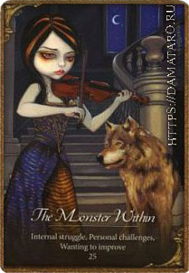 Оракул говорит: Существует то, о чем мы знаем больше, чем можно себе представить. Мы не боимся никого в мире, но у нас есть способность уничтожить нечто нежное и красивое в одно мгновение, сама наша природа обеспечивает в нас голод, и мы можем убить того, кого мы любим, если мы возьмем его. Это ужасная дилемма, потому что мы любвеобильные, любящие - мы знаем, как приблизиться, и как сделать хорошо и контролировать в течение многих лет. Но через некоторое время, в момент слабости, когда мы алчущие и наше человеческое далеко, мы можем привязать, и наш голод может пересилить невероятный контроль и баланс, которые у нас были. Мы бы никогда не повредим вам. И все же, наше стремление любить вас будет связано с нашим желанием иметь вас. Мы должны научиться дисциплине. И это то, что может привести нас к исчезновению из жизни тех, кого мы больше всего любим. Если вы получаете эту карту, казалось бы, вы тоже боретесь с аспектом себя, что вы знаете может принести вред другому, но который является естественной частью вас, вы боретесь с демонами, которые живут в вас.
