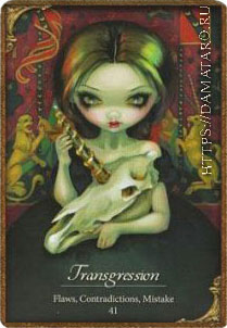 Оракул говорит: Есть много в этом мире, вампиров и людей, феерических и потусторонних существ, которым кажется, доставляют удовольствие недостатки других, они используют их как способ доказать свою собственную ценность. Видите, они указывают: Вы хуже, чем я! И что может быть хуже, чем это убийство священного животного, Единорога, которое теперь оплакивает так глубоко этот маленький вампир. Это неверная слава, и тревожная для всех нас, кто живет долго, чтобы видеть так много беспокойства о том, что они согрешили и причинили боль другим и не могут быть прощены, они используют вину, чтобы манипулировать и чувствовать себя праведным. Даже у наиболее совершенных душ на этой планете есть моменты в их жизни, когда они пошли против своих собственных ценностей и собственного сердца, своей души и отступивших. Им больно, так как они причинили боль другим. И подумайте, когда вы увидите эту карту, что это вы сделали неправильно. Это неверное предположение, что ваши ошибки и недостатки, ваши неправильные решения, и да, ошибки, которые вы сделали более ужасны, чем у любого другого. Существует не один среди нас, кто сделал не так. И это хорошо, что мы, вампиры, и вы, люди можем чувствовать угрызения совести, и принимать меры, чтобы исправить и сделать лучше себя. Но то, что мы наблюдаем здесь, является тем, что вам говорят снова и снова либо оскорбительные слова, или ваша собственная оскорбляющая часть вас говорит, что вы виновны и никогда не можете быть прощены. Теперь вы должны принять меры, чтобы исправить то, что можно исправить, извиниться четко и сразу, если это то, что нужно сделать, а затем простить самого себя. Постоянное внутреннее разрушение собственной значимости является ложным королем силы. Не хорошо причинять себе вред снова и снова, чтобы доказать, как жаль, что ты есть. Живите лучше, сделайте лучше, но пусть самонаказание пройдет и не позволяйте другим использовать ваше сострадательное раскаяние в своих целях. Да, они есть. Мы все, человеческие и потустороннего существа, преступали против естественных законов и законов своей собственной души. Что мы можем сделать - вот что важно. А теперь иди и загладь свою вину и поблагодари за дар самостоятельного прощения.