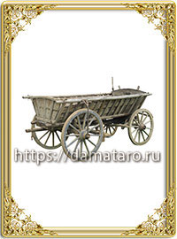 Предстоит дорога, сама судьба отправляет вас в новый путь, который должен стать счастливым. Новые возможности, новый образ жизни уже ждут вас! Телега, как бы весьма прозрачно даёт понять: пришло время менять себя, хватит стоять на месте, не дайте захватить себя лени и апатии.