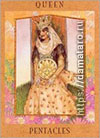 Королева пентаклей – непосредственное олицетворение жизни. Типичная земная мать, эта экспансивная, радостная пожилая женщина имеет талант создавать небеса на земле.