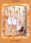 Окруженная восемью мечами, женщина поймана в ловушку. Если бы она искала, она бы увидела выход. Но она слишком ошеломлена трудностями, чтобы размышлять.