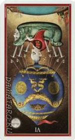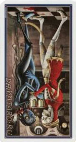Арлекин пытается проглотить мечи в смертельном номере, и его намерения тщетны. Веревка, которая связывает мечи, изношена и скоро порвется, оставив его в трагической ситуации.