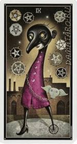 Богатая женщина гуляет по городским улицам, сопровождаемая своим маленьким питомцем. Девять пентаклей окружают ее, показывая ее материальное богатство.