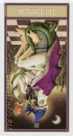 Императрица сидит на троне с воем саду и держит в руках цветок, исходящий из ее собственного тела. Будучи Богиней плодородия, она едина с природой.