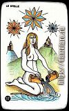 Эта карта представляет надежду, веру, вдохновение, инновации и указывает на удачу, яркие перспективы, оптимизм, знание о прошлом для использования в будущем. Любовь, духовное влияние, астрологические влияние звезд.