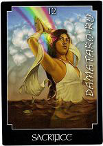 Значительные достижения, как правило, достигаются в результате больших жертв. Карта представляет собой самопожертвование и время, когда нужно оглядеться и понять, что необходимо отпустить. Уступая и отпуская, остается больше места для получения, принятия. Наградой станут трансформация, мудрость, благодарность и просветление.