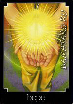 Карта сосредотачивается на таких качествах как надежда, вера, исцеление, чаяния, успех и, наконец, просветление. Когда выпадает эта карта, знайте, что особое желание, которое вы загадали, со временем может осуществиться. Карта Надежды поможет вам увидеть, что невозможное и впрямь может стать возможным. Сила, приведенная в действие вашей душой – определяющая, что возможно и в чем разница между успехом и провалом – это сила вашей веры.