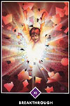 Преобладание красного на этой карте показывает, что ее субъект это энергия, мощь и сила. Яркий свет исходит из солнечного сплетения или энергетического центра человека, и его поза выражает силу и решительность. Каждый из нас достигает момента, когда с меня довольно. В это время нам кажется, что мы должны сделать что-нибудь, что угодно, даже если позже это приведет к ошибке, и отбросить всю тяжесть и ограничения, которые сдерживают нас. Если мы этого не сделаем, они грозят удушить и искалечить саму нашу жизненную энергию. Если вы сейчас чувствуете, что с меня хватит, позвольте себе рискнуть и разрушить старые системы и ограничения, которые не давали течь вашей энергии. Делая это, вы будете удивлены, сколько жизненности и возможностей этот прорыв может привнести в вашу жизнь.
