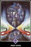 Руки существования сложены в форме женских гениталий, лона космической матери. Внутри открывается множество образов, лица из других времен. Может быть забавно фантазировать о прошлых жизнях, но это только развлечение. Главное - понять кармическую систему наших жизней и увидеть, что они уходят корнями в бесконечно повторяющийся цикл, который увлекает нас в неосознанное поведение. Две радужные ящерицы слева и справа представляют собой знание и незнание. Они стоят на страже бессознательного, подтверждая то, что мы готовы к видению, которое в ином случае может разобраться. Проблеск вечного в нашем существовании - это дар, и понимание роли кармы в нашей жизни не может быть достигнуто волевым усилием. Это пробуждающийся колокол; события в нашей жизни пытаются показать вам модель, такую же древнюю, как путешествие вашей собственной души.