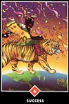 Этот персонаж очевидно, в данный момент на вершине, и весь мир отмечает его успех торжественным парадом! Из-за вашей готовности принять недавние вызовы жизни - вы сейчас или вскоре будете наслаждаться великолепной поездкой на тигре успеха. Приветствуйте его, наслаждайтесь им и разделите вашу радость с другими - и помните, что у всех праздничных парадов есть начало и конец. Если вы помните об этом и выдавливаете каждую каплю сока из счастья, которое сейчас испытываете, вы сможете принять будущее, когда оно наступит, без сожаления. Не поддавайтесь искушению попытаться задержать это цветущее мгновение или сделать его пластиковым, чтобы оно длилось вечно. Величайшая мудрость заключается в том, чтобы помнить - все явления нашей жизни, долины это или вершины, пройдут. Празднуйте и продолжайте ехать на тигре.