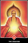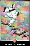 Когда этот человек движется по камням, он ступает легко и несерьёзно, и в то же время совершенно сбалансированно и бдительно. За водоворотом вечно меняющихся вод видны силуэты зданий; на заднем плане виден город. Этот человек остается в миру и в то же время вне его, сохраняет свой баланс и способен наблюдать за этим сверху. Эта карта требует, чтобы мы оставались бдительными к тому, что происходит здесь и сейчас, не вовлекаясь в другие пространства и времена. Жизнь - это великий океан. В нем вы можете играть, если отбросите свои суждения, предпочтения и далеко идущие планы. Что бы вам не встретилось на пути, будьте доступны. И не волнуйтесь, если вы споткнетесь или упадете; просто встаньте, отряхнитесь, улыбнитесь и идите дальше.