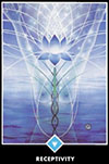 Восприимчивость представлена женственным, восприимчивым качеством воды и эмоций. Ее руки тянутся вверх, чтобы принять, и она совершенно погружена в воду. У нее нет головы, нет занятого и агрессивного ума, чтобы препятствовать ее чистой восприимчивости. И когда она наполнена, она постоянно опустошает себя, переполняясь, и снова принимает. Модель лотоса или форма, которая возникает из нее, представляет совершенную гармонию вселенной, которая становится очевидной, когда мы со настроены с ней. Королева Воды несет с собой время безграничности и благодарности за все, что предлагает жизнь, безо всяких ожиданий и требований. Ни обязанность, ни мысль о заслуге или вознаграждении не важны. Чувствительность, интуиция, или сострадание - качества, которые сейчас освещают путь, растворяя все препятствия, которые отделяют нас друг от друга и от целого.