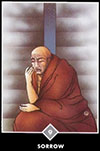 Это образ Ананды, двоюродного брата и ученика Гаутамы Будды. Он все время был рядом с Буддой, сопровождая его в течении сорока двух лет. Говорят, что, когда Будда умер, Ананда все еще был рядом с ним, плача. Другие ученики осуждали его за это заблуждение: Будда умер совершенно удовлетворенным; ему нужно было веселиться. Но Ананда сказал: Это вы заблуждаетесь. Я плачу не по нему, а по себе, потому что все эти годы я постоянно был с ним, но до сих пор не достиг. Ананда бодрствовал всю ночь, глубоко медитируя, чувствуя боль и отчаяние. Говорят, к утру он стал просветленным. В моментах великого горя заключена возможность великой трансформации. Но чтобы произошла трансформация, мы должны идти глубже, к самым корням нашей боли, и испытать ее такой, какая она есть, без обвинения и жалости к себе.