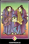 Ветви этих двух цветущих деревьев переплетены, и их упавшие лепестки смешаны на земле в своих прекрасных оттенках. Это как будто земля и небеса, соединенные любовью. Но они стоят сами по себе, каждый посажен в землю в своем собственном соединении с землей. Так они представляют собой существование истинных друзей, зрелых, легких в отношениях друг с другом, естественных. В их соединении нет назойливости, нет требования, нет желания изменить другого. Эта карта указывает на готовность войти в качество дружелюбия. При этом переходе вы можете заметить, что вас больше не интересуют всевозможные драмы и романы, которыми заняты другие. В этом нет потери. Это рождение более высокого, более любящего качества, рожденного из полноты опыта. Это рождение любви, которая действительно безусловна, без ожиданий и требований.