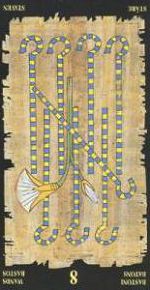 Вы достигли уже многого. Теперь, на уровне Семерки Скипетров, главное - отстоять свои позиции, свою территорию, свое мнение. Построение взаимоотношений с окружающим миром основывается на правильном выборе окружения. Необходимо правильно выбрать партнеров, которые разделяли бы Ваши взгляды и убеждения. Кроме того, эта карта означает смелые действия в трудной ситуации. Колебание, небольшое предательство самого себя и своих убеждений - прямая дорога к поражению и потере всего достигнутого.