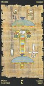 Появление в раскладе перевернутой Двойки Кубков может говорить о размолвке, небольшой ссоре, о сложностях с партнерами или друзьями. Но эта карта никогда не является негативной - «милые бранятся, только тешатся». Конфликт будет непродолжительным, разногласия - непринципиальными, преодолев барьер непонимания, можно вновь наладить отношения.