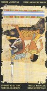 «А он, мятежный, ищет бури, как будто в буре есть покой.» М. Ю. Лермонтов Нет таких трудностей, которые не мог бы создать себе перевернутый Воин Мечей. Попадая в незнакомый коллектив, он склонен хвастать о своих свершениях, тем самым провоцируя ненужные конфликты. Он как бы притягивает к себе опасные и конфликтные ситуации. Где бы он не появился, он обязательно нарвется на неприятности. Трудности - это залог того, что жизнь его не пройдет впустую. Если он не уверен, правильно ли наметил решение проблем, возникших в работе, он силой подавляет страх, разбивает сомнения и идет напролом. «Лучшая оборона - это нападение». Максимализм во всем доведен до абсурда. «Если факт не вписывается в теорию, то тем хуже для факта». Из-за своей несдержанности и легкомыслия, отсутствия осторожности этот человек постоянно попадает в опасные ситуации. В крайнем проявлении эдакий благородный, скрывающий криминальные наклонности, хулиган-разбойник Робин Гуд, Дубровский, батька Махно и т. п.