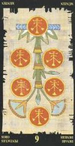 Благополучное преодоление всех трудностей - как внешних, так и внутренних. Ощущение предстоящего праздника (чувство, которое возникает в пятницу вечером), гостеприимство, радушие. Умение сделать счастливыми окружающих. Часто Перевернутая Девятка Кубков предвещает вспышки интуиции, предчувствия, вещие сны, знамения.