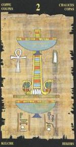 На уровне Шестерки Кубков эмоция, прошедшая через очищение Пятерки, одухотворяется, переходит в альтруистическую любовь ко всему сущему. Радость, доставляемая открытым общением. Длительная дружба, основанная на общих интересах, пережитых совместно событиях. Очень часто эта карта символизирует чистые отношения, дружба со школьной скамьи, прошедшая сквозь всю жизнь. По этой карте могут идти и такие возвышенные чувства, как патриотизм, любовь к Родине, чувство общности с людьми определенной группы. Ностальгия, детская открытость, чистота и невинность. Эта карта возвращает нас в детство, дает возможность проявиться самому лучшему в человеке - «Будьте, как дети». Появление этой карты призывает возвыситься над суетой, подумать об истинной духовности.