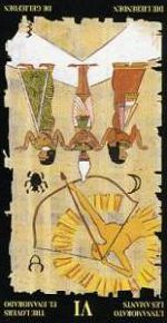 Сделан неверный выбор. Неудача при прохождении испытания. Невозможность принять решение. Сомнение, затруднение и разногласия управляют ситуацией. Конфликт, который не может быть разрешен. Прекращение сопротивления искушению. Выбор мирской любви, страсти и собственнических чувств. Общее значение. Разделение. Крушение в любви и браке Отказ пройти испытание. Неверный выбор.