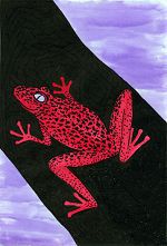 Красно-черная лягушка, сидит на черной ветке, похожей на реку, протекающую по лавандовому небу. Лягушка – существо, тонко чувствующее окружающую среду, имея более проницаемую кожу, чем остальные. Она живет в чувствительной среде, в районах, где пресная вода служит источником жизни вокруг неё. Лягушка проявляет интуитивный подход. Она понимает мир посредством ощущений и приближается к своей богине через беспристрастную имитацию. Она знает, что произойдет в следующий момент. Лягушка преподносит вам экстрасенсорный дар и предупреждает о чувствительности к происходящему вокруг вас.