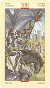 Преобразование, переворот, начало и конец, природные катаклизмы, мутация, удивление.Карта номер XIII, козырь Таро под названием Смерть, не может не вызвать реакцию страха как в опытном читателе карт, так и в любопытном исследователе. Сделав новый рисунок этой карты, мы надеемся, что некоторые из этих суеверных страхов будут устранены и что на поверхности окажется истинное значение этой значительной карты. Подобно тому, как Феникс символизирует возрождение и обновление, Смерть обозначает, что действенный опыт трансформации лежит перед Вами. Подход к этому важному моменту в Вашей жизни может принять несколько форм. Чаще всего есть законченные и не законченные дела – особенно в Вашем эмоциональном мире. Тем не менее, творческие проекты или длительная работа над достижением личной цели могут также быть закончены, оставляя в Вас на некоторое время ощущение пустоты. Может показаться, что Ваша жизнь сделала временную остановку. Есть ощущение, будто мир задержал дыхание. Эта фаза напоминает три дня, о которых сказано в легенде, предшествовавших моменту появления Феникса, возрожденного из пепла. Во время этой фазы Вы можете переоценить свои цели, взаимоотношения или что-либо еще важное для Вас, но некоторое время Вам может быть трудно предпринимать конструктивные действия.