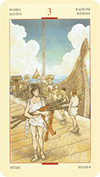 Преддверие дел, решение, исследование, открытие, инициатива, тяжелый труд ради достижения цели.Тройка Жезлов символизирует успешное продвижение вперед. Она имеет прочные связи с прошлым – над чем бы Вы ни работали до этого, теперь это даст результаты. Прошлый опыт, личные контакты и завершенные проекты – все это предвещает новые возможности. Теперь их можно строить на том основании, которое Вы уже заложили. Эта карта традиционно благоволит торговле и коммерции, информаторам и писателям, изобретателям и предпринимателям. Она предвещает увеличение дохода, многие ценные идеи и возможность того, чтобы давние мечты стали явью.