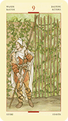 Бдительность, устойчивость в трудной ситуации, защита. Осторожность, основательность, ограничение, недоверие, поддержка слабых.Девятка Жезлов завершает цикл творческого и интуитивного продвижения вперед, обозначенного мастью Жезлов. Ее присутствие в раскладе подтверждает достижение, успех, выздоровление после болезни и другие значительные события. Тем не менее, поскольку это девятка, а не десятка (обозначающая трансцендентное завершение), она свидетельствует о незащищенности или неуверенности. В настоящий момент трудно принять успех или осознать реальное значение своей силы и таланта. Вы еще не полностью используете резервы своей энергии и вдохновение, потому что не осознаете, что они Вам доступны. Вы можете столкнуться со сложной ситуацией в ближайшем будущем, Вам может понадобиться собраться и сделать еще одно последнее усилие, чтобы достичь цели.