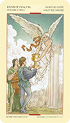 Посыльный, новости, план и цель, секретность, слухи, любопытство, молодой ученый, умозрительный дух.Эта карта представляет посланца стихии воды и мира творчества, любви и мечты. Обозначая человека, этот Паж является мечтательным ребенком или подростком любого пола, который может быть душевным, очень чувствительным, обладать художественным вкусом. Такой ребенок часто теряется в собственном мире, несомненно, он может создавать воображаемых друзей. Трудности, которые этот ребенок может испытывать, часто включают в себя воображаемые страхи и фобии.