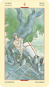 Уход, бессменная вахта, размышление, одиночество, поиск корней, обязательства.Четверка Мечей – это карта отдыха, выздоровления и выхода из ментальнострессовой фазы. Она советует планируемый уход от повседневности, чтобы Вы могли восстановить свою энергию. Она представляет необходимость религиозного и духовного уединения, медитации, выздоровления. Умственное напряжение, обозначенное двойкой или тройкой, достигло пика, и его необходимо снять. Это – время размышлений, переоценки ценностей и, возможно, корректировки направления движения.