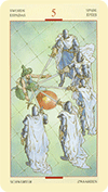 Появляясь в раскладе, Пятерка Мечей означает потерю, разочарование и очевидный провал. Обычно это интерпретируется в личном плане, но иногда карта предполагает, что Вы или тот, кто задает вопрос, были причиной неудачи или разочарования другого человека. Такие концовки приносят с собой ощущение ограниченности или даже паранойи. Обвинение, зависть и ревность могут проявиться у Вас или Вы станете мишенью таких эмоций. Желание обвинять кого-то или даже подозревать злобные сверхъестественные силы может быть очень сильным. И, несомненно, очевидная потеря может казаться очень несправедливой – победитель в этом сражении, возможно, использовал коварную тактику – сплетни, ложь и другие неприятные уловки. Но как карта необходимого изменения Пятерка Мечей подразумевает прогресс. Он может быть болезненным и трудным, но открывает новые пути и горизонты в дальней перспективе.