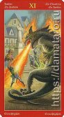Значение этой карты и ее толкование: Правосудие - Равновесие - Регулирование - Судьба.