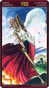 Оба. Ориша, символизирующая веру, благородство, честь. В Бразилии "правосудие" чаще соотносится с Оришей Шанго, но в этом Таро более значимый Ориша символизирует ХХ Аркан, т.к. в данном Аркане правосудие теснее связано с юриспруденцией и общественными законами. Закон, супружество, баланс.