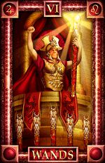 Победа. Это прямая и простая карта: она означает победу. Победа сама по себе, однако, не пряма и не проста. Перед нами человек, выигравший сражение, но посмотрите на его лицо с жесткими чертами, это заставляет задуматься о жестокости и о том, времени, когда в нем проявятся самые негативные стороны Императора