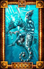 Описание человека: Паж плывет возле поверхности, а Рыцарь погружается прямо в глубины. Он оседлал морского коня, на его щите – мотив Чаши. Он чемпион любви. Он живет и умирает ради любви. Он влюблен в любовь. Многие думают, что Рыцарь был бы идеальным любовником, но постоянная диета его романтизма, возможно, со временем станет утомительной. И тем не менее, без его энергии мир был бы и в самом деле скучным местом.