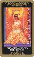 Поиск и нахождение своего места в мире. Подчинение стихии сил материи разума и труду человека. Победа над косностью, сила воли, самопознание. Эта карта советует вам приступить к своему будущему со смелостью, вооруженным сознанием своего права. Из испытаний вы выйдете с честью, благодаря, прежде всего, силе воли.